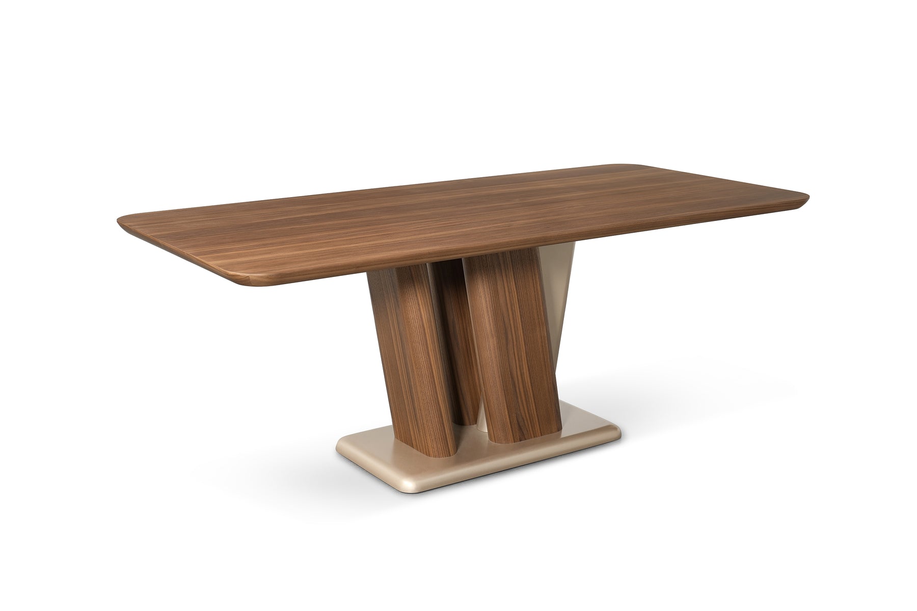 Rectangular Walnut-Tone Dining Table with Rounded Corners & Accented Legs – Soft Geometry with Refined Contrast